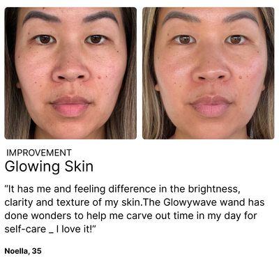 With a rotating head and sleek shape, the Glowywave 4-in-1 skin care wand adapts to every angle of your face. The built-in timer guides you zone by zone, so you can shape your easy 3-minute treatment around what you want to focus on the most. Use 3 to 5 times per week at a max of four treatments per session for best results.