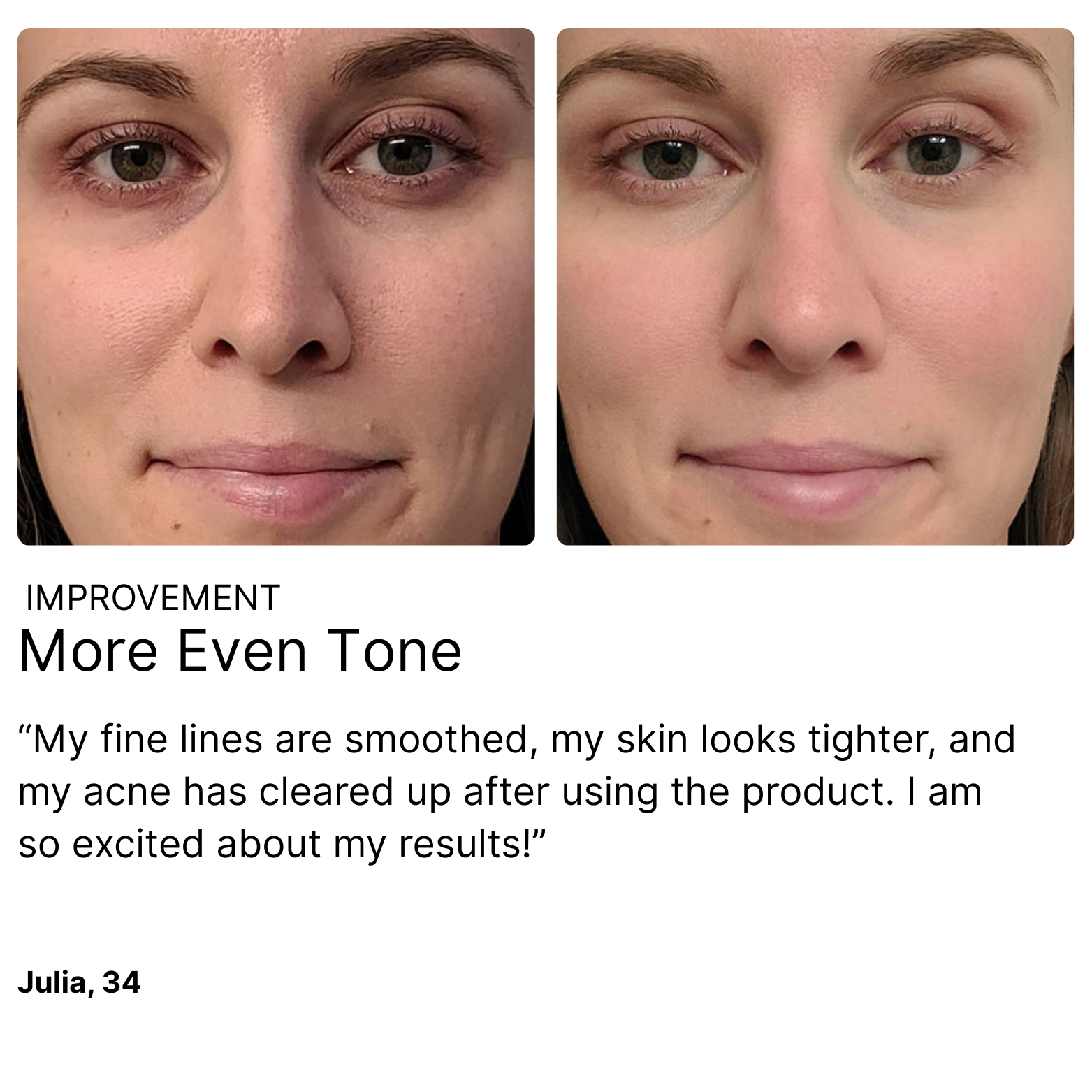 Red Light Therapy (630nm), Therapeutic Warmth, Galvanic Current, and Facial Massage work together to help visibly smooth, firm, and refresh the skin in just 12 minutes. Red Light Therapy is known for its ability to support healthy collagen production, working to visibly rejuvenate your complexion and combat signs of skin aging from deep within your skin.